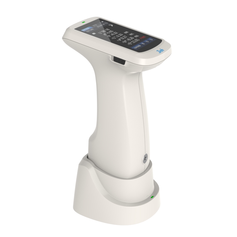 分光反射率:MAV/SCI,标准偏差0.1%以内(400~700nm:0.2%以内)台间差 MAV/SCI,ΔE*ab 0.3以内(BCRA系列Ⅱ 12块色板测量平均值) 显示精度 0.01 反射率测定范围 0-200% 反射率分辨率 0.01% 测量方式 单次测量,平均测量(2~99次) 定位方式 稳定片定位+摄像头取景定位 白板校验方式 非接触式自动白板校验 尺寸 120*75*207mm 重量 367g(不含校正底座) 电池电量 锂电池,3.7V,3200mAh,8小时内8000次 照明光源寿命 10年大于120万次测量 显示屏 TFT 真彩 3.5inch,电容触摸屏 接口 USB,蓝牙 存储数据 标样500条,试样15000条(一条数据可同时包括SCI/SCE),APP/PC海量存储 软件支持 Android,IOS,Windows,微信小程序,鸿蒙 语言 简体中文,English,繁体中文 操作温度范围 0~40℃,0~85%RH(无凝露),海拔:低于2000m 存储温度范围 -20~50℃,0~85%RH(无凝露) 准确性保证 保证一级计量合格 标准附件 电源适配器、数据线、说明书、品质管理软件(官网下载)、白校正盒、保护盖、腕带、测量口径 可选附件 微型打印机、粉末测试盒 注: 如有变更,恕不另行通知