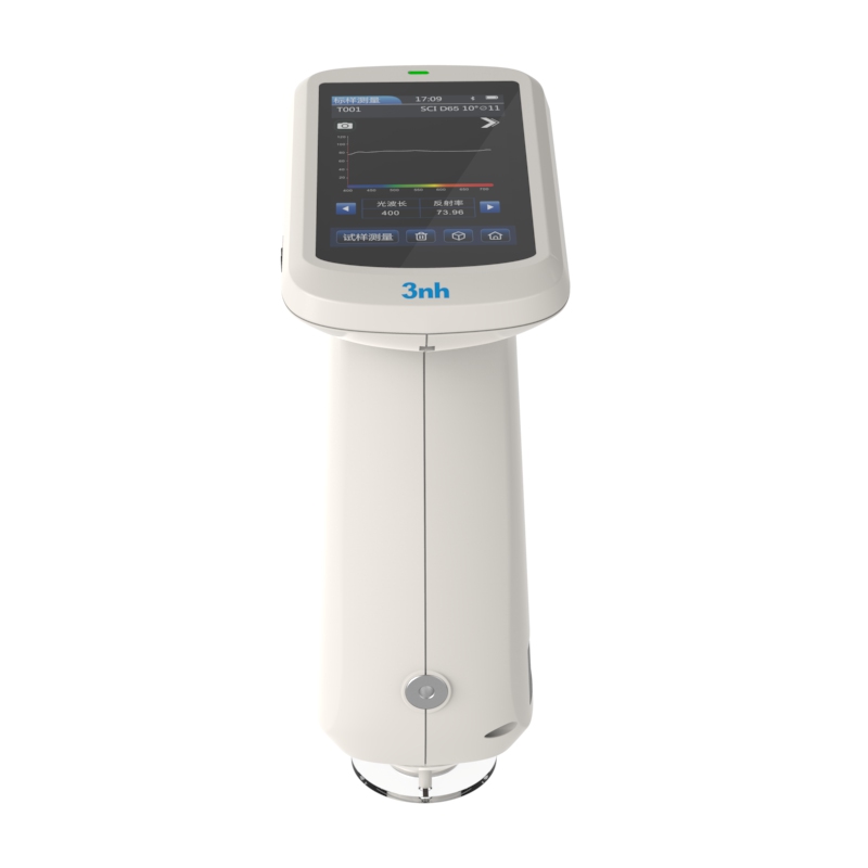 分光反射率:MAV/SCI,标准偏差0.1%以内(400~700nm:0.2%以内)台间差 MAV/SCI,ΔE*ab 0.35以内(BCRA系列Ⅱ 12块色板测量平均值) 显示精度 0.01 反射率测定范围 0-200% 反射率分辨率 0.01% 测量方式 单次测量,平均测量(2~99次) 定位方式 稳定片定位+摄像头取景定位 白板校验方式 接触式白板校验 尺寸 120*75*207mm 重量 367g(不含校正底座) 电池电量 锂电池,3.7V,3200mAh,8小时内8000次 照明光源寿命 10年大于120万次测量 显示屏 TFT 真彩 3.5inch,电容触摸屏 接口 USB,蓝牙 存储数据 标样200条,试样10000条(一条数据可同时包括SCI/SCE),APP/PC海量存储 软件支持 Android,IOS,Windows,微信小程序,鸿蒙 语言 简体中文,English,繁体中文 操作温度范围 0~40℃,0~85%RH(无凝露),海拔:低于2000m 存储温度范围 -20~50℃,0~85%RH(无凝露) 准确性保证 保证计量合格 标准附件 电源适配器、数据线、说明书、品质管理软件(官网下载)、白校正盒、保护盖、腕带、测量口径 可选附件 微型打印机、粉末测试盒 注: 如有变更,恕不另行通知