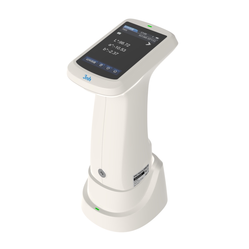 分光反射率:MAV/SCI,标准偏差0.08%以内(400~700nm:0.18%以内)台间差 MAV/SCI,ΔE*ab 0.3以内(BCRA系列Ⅱ 12块色板测量平均值) 显示精度 0.01 反射率测定范围 0-200% 反射率分辨率 0.01% 测量方式 单次测量,平均测量(2~99次) 定位方式 稳定片定位+摄像头取景定位 白板校验方式 非接触式自动白板校验 尺寸 120*75*207mm 重量 367g(不含校正底座) 电池电量 锂电池,3.7V,3200mAh,8小时内8000次 照明光源寿命 10年大于120万次测量 显示屏 TFT 真彩 3.5inch,电容触摸屏 接口 USB,蓝牙 存储数据 标样500条,试样15000条(一条数据可同时包括SCI/SCE),APP/PC海量存储 软件支持 Android,IOS,Windows,微信小程序,鸿蒙 语言 简体中文,English,繁体中文 操作温度范围 0~40℃,0~85%RH(无凝露),海拔:低于2000m 存储温度范围 -20~50℃,0~85%RH(无凝露) 准确性保证 保证一级计量合格 标准附件 电源适配器、数据线、说明书、品质管理软件(官网下载)、白校正盒、保护盖、腕带、测量口径 可选附件 微型打印机、粉末测试盒 注: 如有变更,恕不另行通知