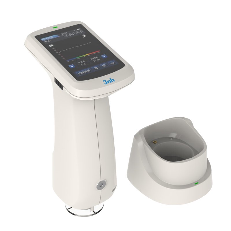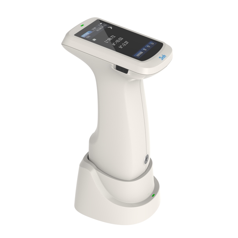 分光反射率:MAV/SCI,标准偏差0.08%以内(400~700nm:0.18%以内)台间差 MAV/SCI,ΔE*ab 0.2以内(BCRA系列Ⅱ 12块色板测量平均值) 显示精度 0.01 反射率测定范围 0-200% 反射率分辨率 0.01% 测量方式 单次测量,平均测量(2~99次) 定位方式 稳定片定位+摄像头取景定位 白板校验方式 非接触式自动白板校验 尺寸 120*75*207mm 重量 367g(不含校正底座) 电池电量 锂电池,3.7V,3200mAh,8小时内8000次 照明光源寿命 10年大于120万次测量 显示屏 TFT 真彩 3.5inch,电容触摸屏 接口 USB,蓝牙 存储数据 标样500条,试样15000条(一条数据可同时包括SCI/SCE),APP/PC海量存储 软件支持 Android,IOS,Windows,微信小程序,鸿蒙 语言 简体中文,English,繁体中文 操作温度范围 0~40℃,0~85%RH(无凝露),海拔:低于2000m 存储温度范围 -20~50℃,0~85%RH(无凝露) 准确性保证 保证一级计量合格 标准附件 电源适配器、数据线、说明书、品质管理软件(官网下载)、白校正盒、保护盖、腕带、测量口径 可选附件 微型打印机、粉末测试盒 注: 如有变更,恕不另行通知