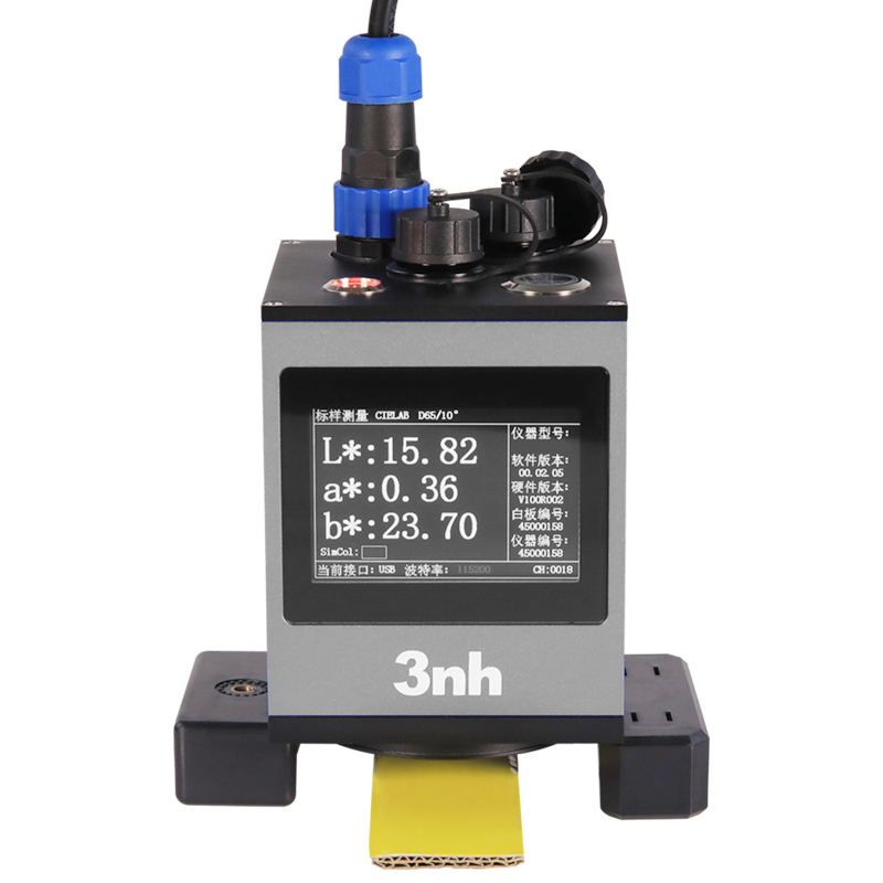 测试探头和被测样品非接触测试,实现液体、酱状物、粉末、易损表面的等非接触精密测色。重点应用于自动化产线的精确颜色测量、品质控制;测量时间最快可达从0.11秒,可通过485或USB同其他系统进行通讯,配备上位机软件